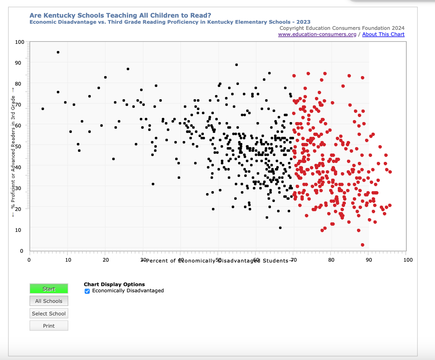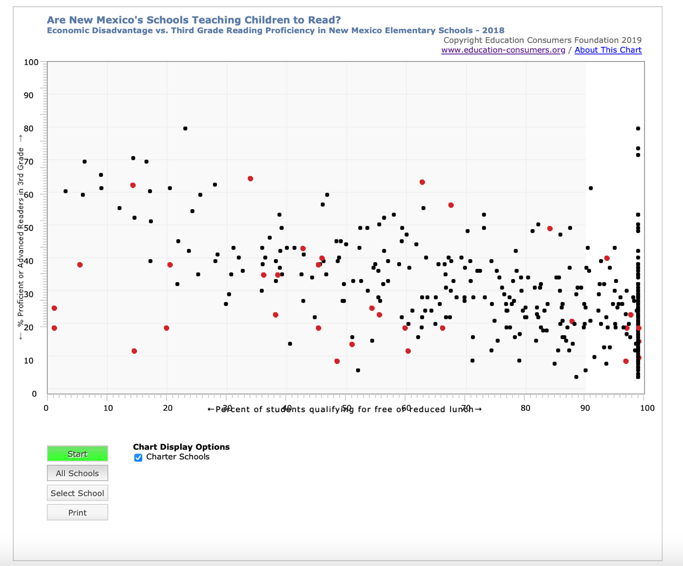 Education Consumers Founders is a group founded to help parents as consumers of education understand the state of education in their local area. They have reading achievement graphs showing how each school and district is doing for reading in every state. This shows how well your local school is teaching their students to read. Graphical results for Kentucky and New Mexico are shown below.